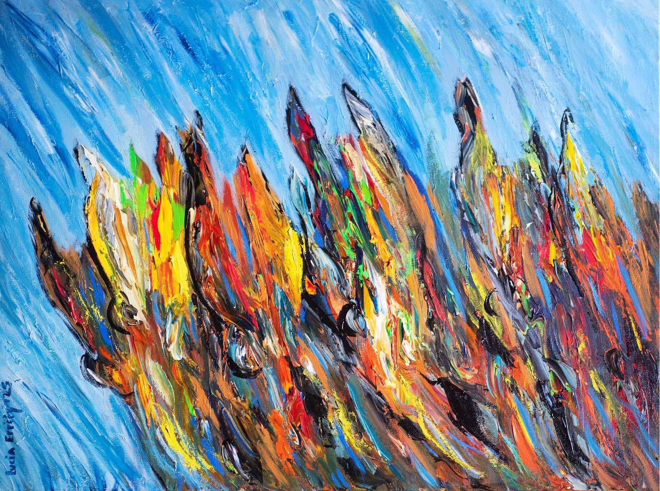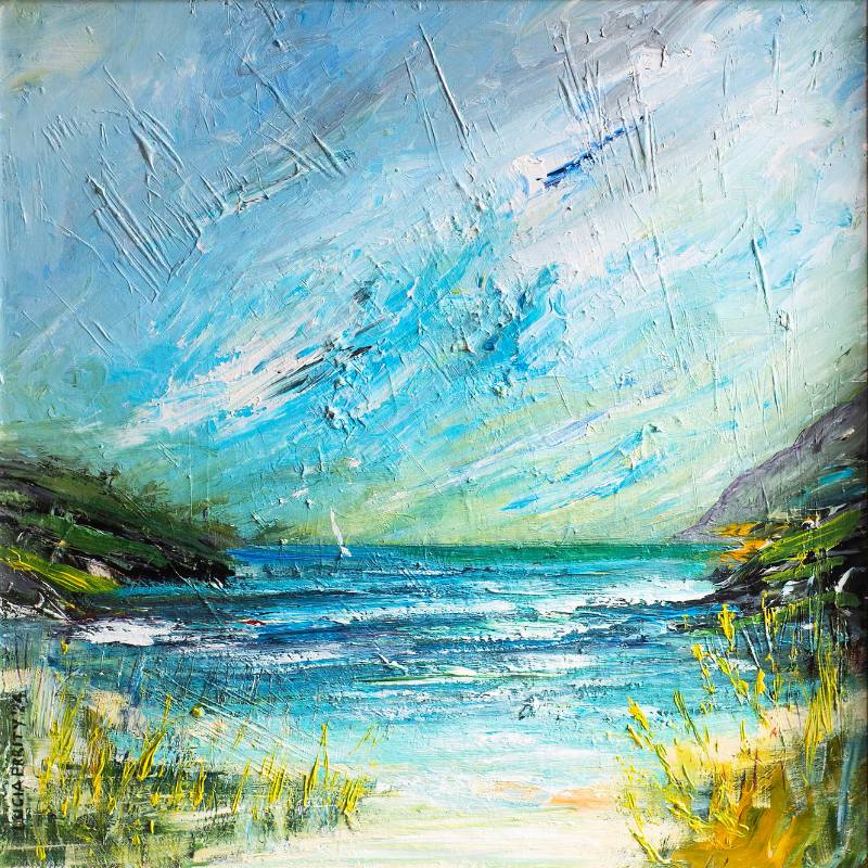 Lucia Errity is a Dublin-born artist who has called Bellewstown, Co. Meath home since 2003. Her studio, nestled in the Harvest Gallery—a charmingly converted cow shed beside her home—is where she brings her artistic vision to life.